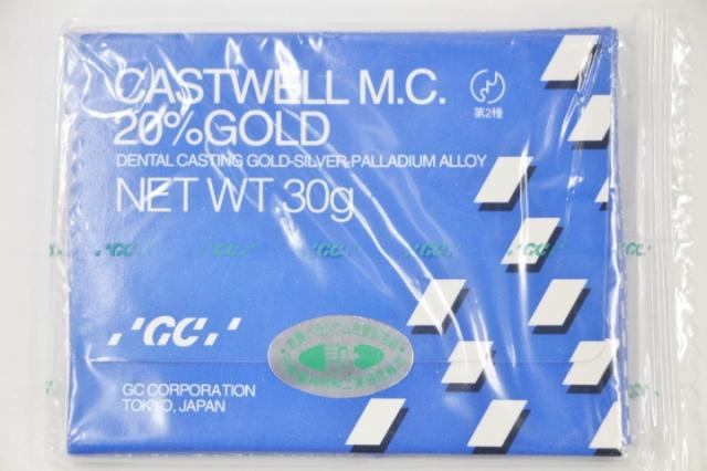 株式会社ジーシーより製造されている金が20%、銀が41%含まれている金パラ。GC キャストウェルm.c.金20% |