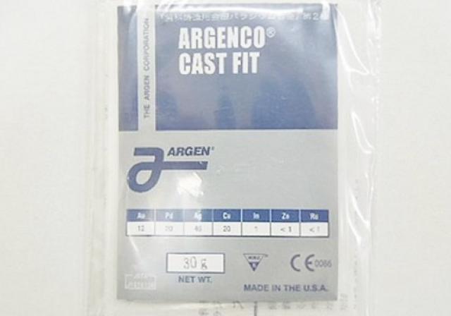スマートプラクティスより販売されている12%金パラ(アージェンコ キャストフィット)。銀の含有率は40%となり、液相点は918℃。 |